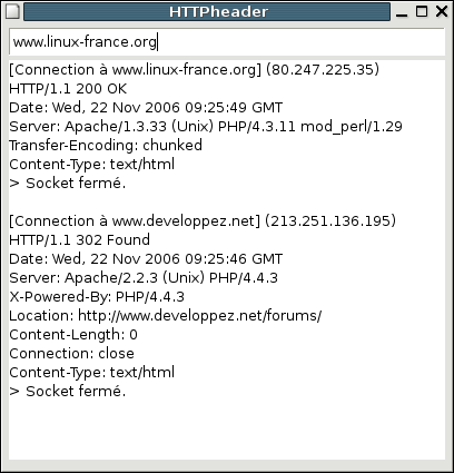l'en-tête HTTP du serveur avec une requête HEAD.