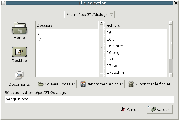 filew = gtk_file_selection_new ("File selection");