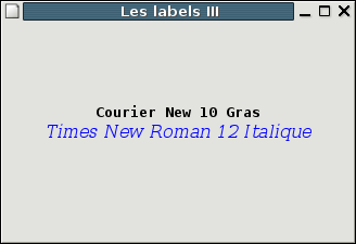 gtk_label_set_markup(GTK_LABEL(pLabel), "<span face=\"Courier New\"><b>Courier New 10 Gras</b></span>\n"